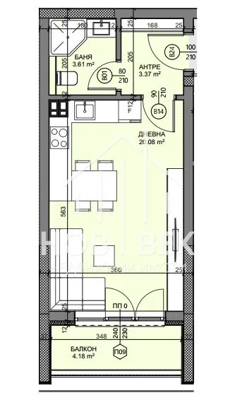 Имотът е с чиста жилищна площ от 37.71 кв.м. и се състои от: коридор, дневна с кухня и трапезария, балкон, баня с тоалетна. Към всеки имот ще бъдат включени съответните идеални части от общите части на сградата, както и от земята върху която ще бъде изграден обекта.