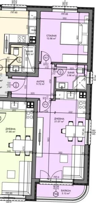 Светли и просторни стаи с правилни форми, всяко жилище разполага с 1 или 2 сервизни помещения;