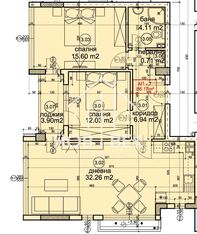🔹 103 м² простор – идеален за съвременен начин на живот! Дневен тракт,коридор,две спални,баня с таалет,перално,лоджия