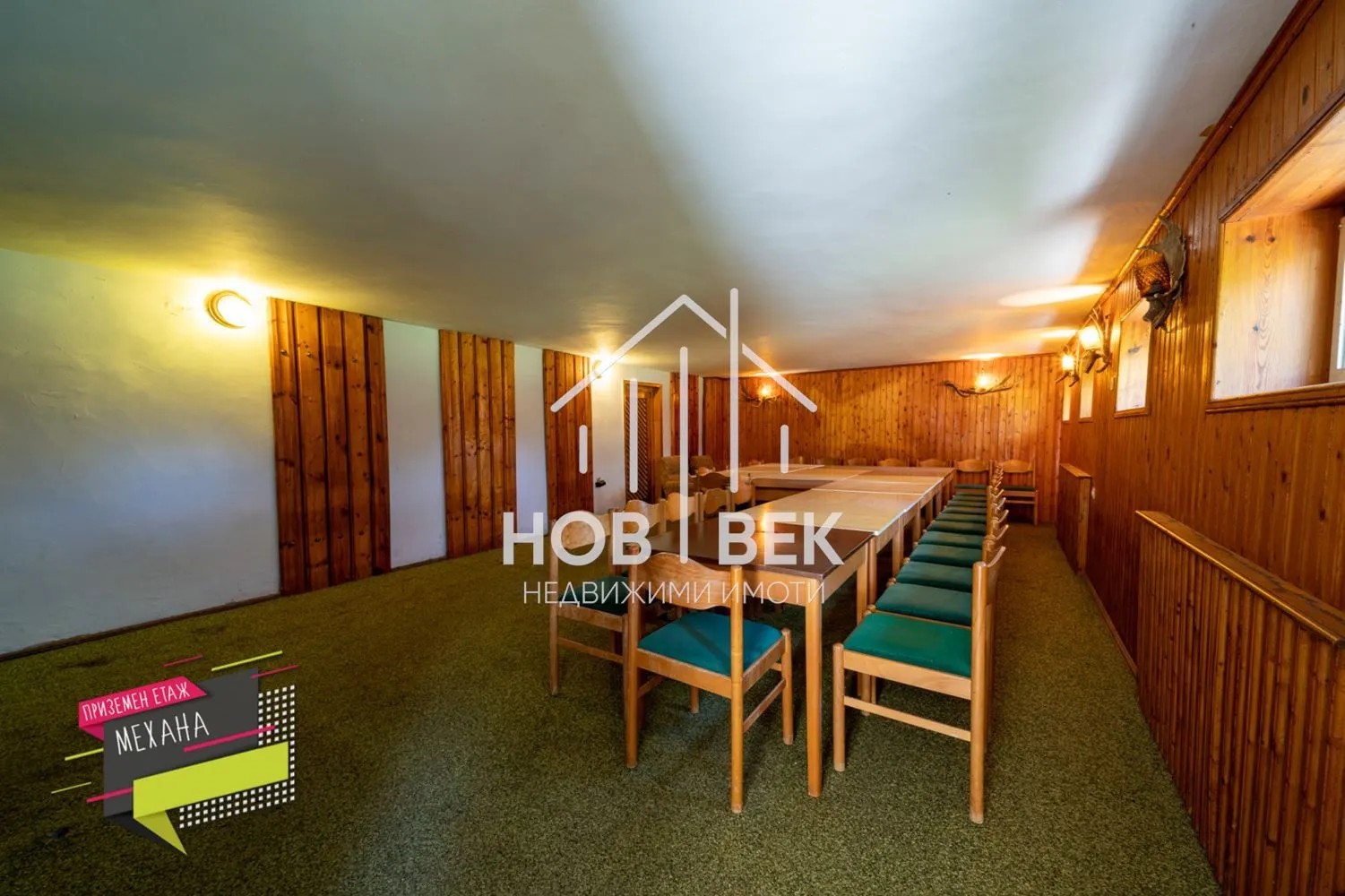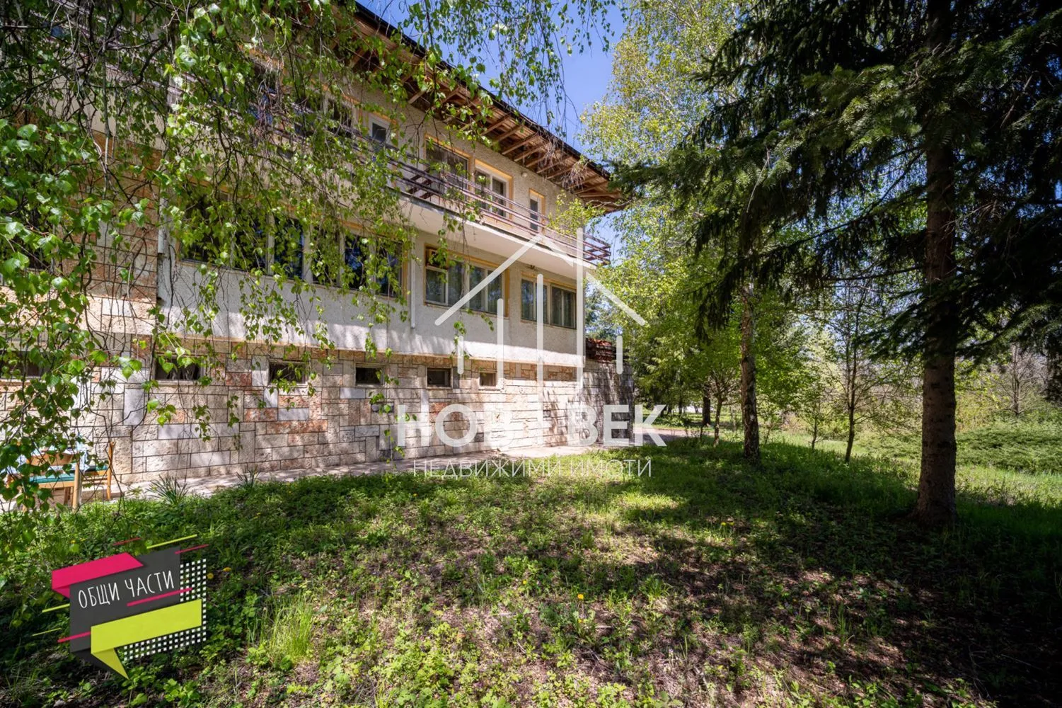 ЕКСКЛУЗИВНО!!!’Нов Дом’ недвижими имоти предлага на Вашето внимание масивна постройка, сред зелен парк с широколистна гора, чист въздух и простор. Сградата е със следното разпределение: партерно ниво, на което се намират: столова с кухненски кът, санитарно помещение, гараж, котелно помещение и склад. На първи етаж са разположени: слънчево входно антре, обособено, като рецепция, в което биха могли да бъдат посрещнати всички бъдещи посетители, коридор, от който имаме достъп до едно от най-комфортните и емблематични помещения в сградата, а именно – стаята за отдих, ресторантска част, професионално изградена кухня, две санитарни помещения и самостоятелно обособен апартамент за персонала. Вторият етаж се състои от 6 спални, всяка от които е със собствен санитарен възел и тераса, от която се разкрива разкошна горска гледка. В парцела има на разположение голям паркинг със свободна площ за паркиране. Покривът на сградата е изцяло ремонтиран, а помещенията в сградата позволяват да бъдат завършени по вкус и желание да на бъдещия собственик. Отоплението в сградата е на ток или чрез локално парно. Достъпът до имота е отличен. Обадете се сега и цитирайте този код: 22